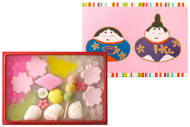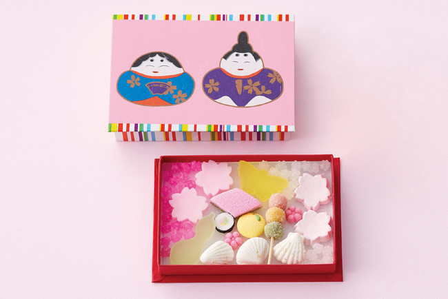 毎年人気のお詰め合わせが、今年はパッケージと中身をリニューアル。その場にあるだけで雛まつり気分を味わえる、目で見て楽しい、食べて美味しい小箱です。