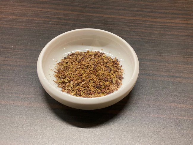 - 2こだわりのスパイスは、オリジナルブレンド(カカオニブ、コリアンダー、クミン、フェンネル)のパウダーと、自家製オイル(八角、シナモン、ローリエ、クローブを米油に入れて弱火で香りを移しパプリカパウダーで色付けしたもの)を最後にかけ、味に深みを出しています。