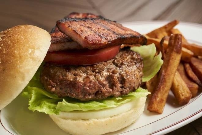 ステーキに使用する牛肉はUSDA Prime Beefから独自の選定方法によってセレクトしています。それをチルドで空輸し門外不出のエイジングノウハウで熟成させ、高温ブロイラーで焼き上げて提供してます。ハンバーガーのパティには、このステーキに使用される熟成肉50%とチャックアイロール50%を使用。これらをつなぎを使わず成形し、香ばしく焼き上げます。付け合わせにフレンチフライドポテトをご用意。牛脂から抽出した油で2度揚げしているため、風味豊かに仕上げています。
