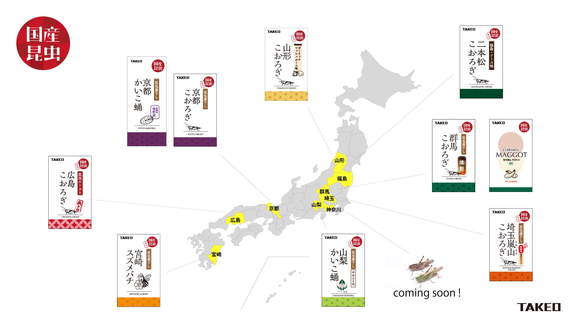 TAKEOは国産昆虫の可能性を開拓していきます。日本では食用昆虫を生産する方が少しずつ増え始めています。昆虫の風味や栄養価は、飼料や飼育環境により大きく変わり、昆虫一つ一つに明確な個性があります。生産者のみなさんはそれぞれが工夫を凝らし、特色のある食用昆虫の生産に取り組んでいらっしゃいます。