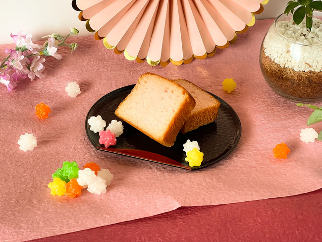 日本の伝統お菓子の金平糖をアクセントに、可愛い桜色の生地は、浅草名物ブランデーとホワイトブランデーにたっぷり漬け込むことで、食感、しっとり感とブランデーの風味をしっかりお楽しみいただけます。また、ブランデーに漬け込み3週間じっくり熟成させることで、食感、風味を損なうことなく、『賞味期限90日以上』の長期保存を実現いたしました。