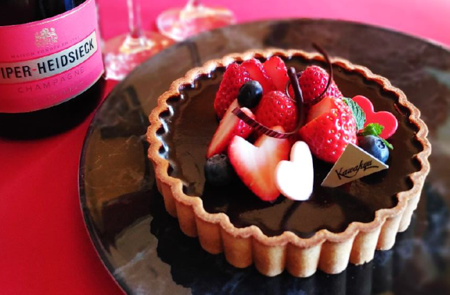 この度のバレンタイン/ホワイトデーイベントでは、「タルト・オ・ショコラ~紀州てまり~」に加え、より上品なひとときをご体感いただける特別な厳選シャンパーニュ「パイパー・エドシック ブリュット」もご用意。
