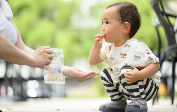 無糖ぽんがし「いとかるし」はパパ・ママや赤ちゃんのお世話をされる方が赤ちゃん連れの外出をゆっくり楽しんでいただくために開発された商品です。