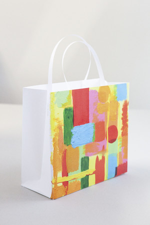 「Maison de Purin(メゾン・ド・プリン)」の特長である重層的な “マリアージュ” のイメージを、アーティストの鮎川さんが魅力的な1枚のアートに落としこみまし た。実際に試食をした時の印象を基に、鮎川さんがその自由な感性で描き下ろした作品を、「MAISON de PURIN」では