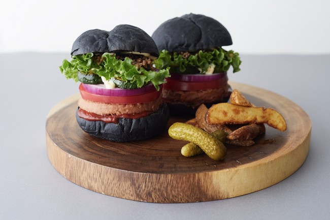 トリュフソースと相性抜群の大豆ミートのパテに、8種類の野菜を竹炭パンでサンドしたボリューム満点なのにあっさりとしたバーガーです。