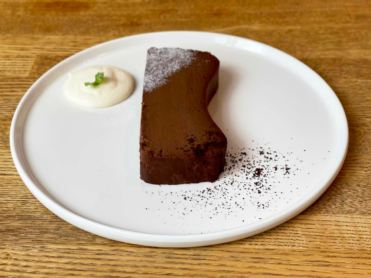 甘さ控えめの生クリーム、エスプレッソ豆を砕いた粉を添えました。