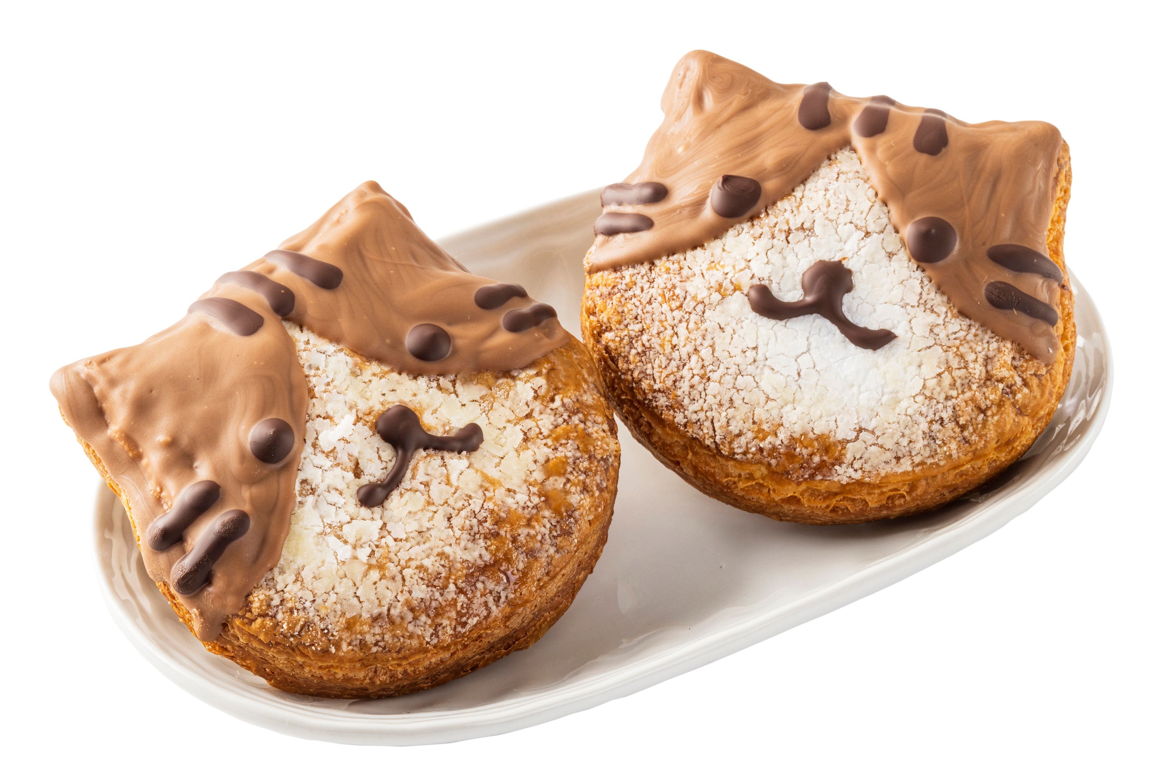 国産小麦と高級発酵バターを使用したクロワッサン生地をにゃらん型に。キャラメルチョコレートでブチを表現した表情がニャンともかわいい、おやつにぴったりの一品。