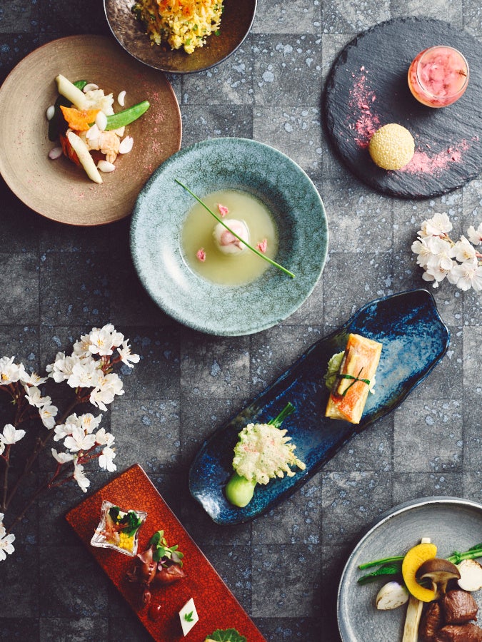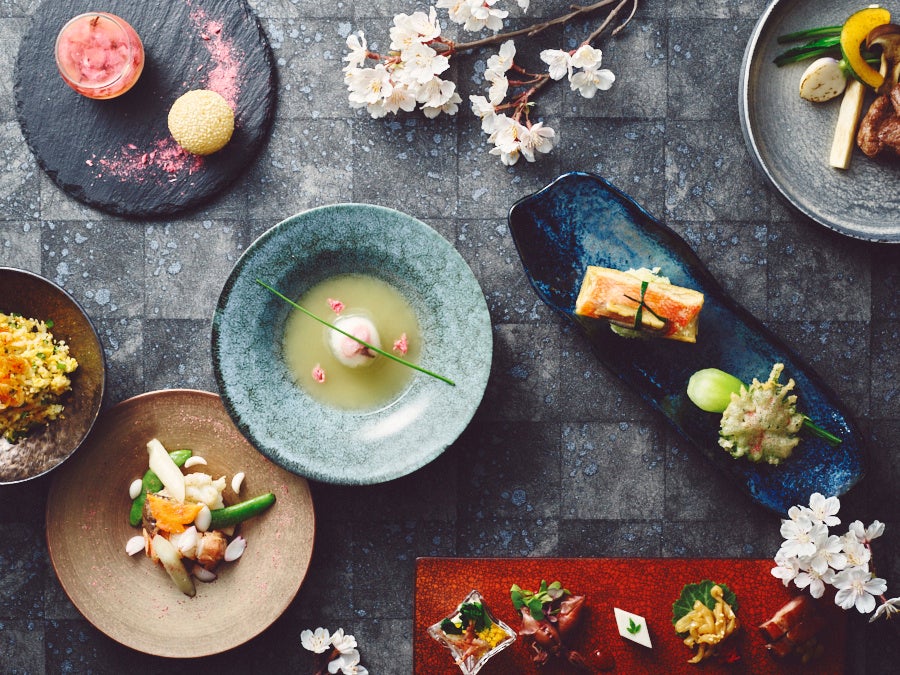 中国料理「チャイナシャドー」では、オーセンティックな中国料理に和のアクセントが人気の「和音」(ディナーコース)を、品川上空の眺望とともにお花見気分で楽しめる華やかなコースに仕上げました。前菜は、ホタルイカの紹興酒漬けや菜の花と桜えびの塩たまご和え、桜ゼリー寄せなど季節感たっぷりの繊細な品々から始まり、ツバメの巣を葛皮で包み蒸した上湯スープや、この時期ならではの桜鯛を生湯葉でくるんで蒸しあげた、桜葉が香る魚香ソースでお召し上がりいただく魚料理をご用意。〆のご飯物には桜えびが香ばしい梅と大葉のあっさりチャーハン、そしてディナーの最後を飾るデザートには、桜風味の杏仁豆腐と桜餡いりごま団子など、どこを切り取っても和と桜を感じられる、心躍る贅沢なディナーをご堪能いただけます。新しい出会いや旅立ちなど、様々なライフイベントが交差するこの季節、チャイナシャドーの洗練された料理と温かいおもてなしで、大切な人との心に残るひとときを演出します。