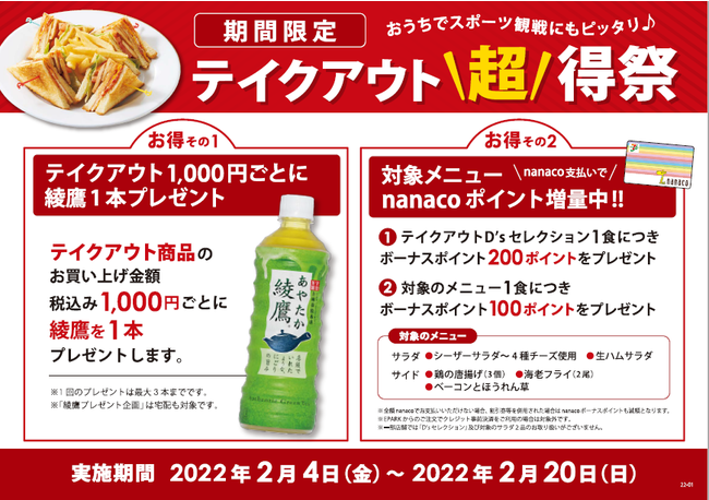 デニーズ(株式会社セブン&アイ・フードシステムズ 東京都千代田区)は、2022年2月4日(金)より、テイクアウト・宅配利用限定で大変お得なキャンペーンを実施します。