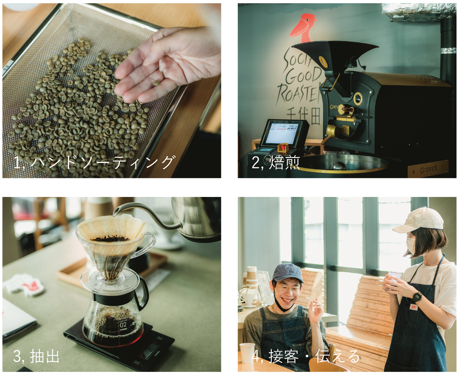 ソーシャルグッドロースターズでは、挑戦してみたいと希望する人の多いバリスタや焙煎士の仕事を通して、垣根無く共に働き、一人一人が自信と誇りをもって働き成長できる機会の提供と、ダイバーシティ体験ができる場所づくりを目指します。