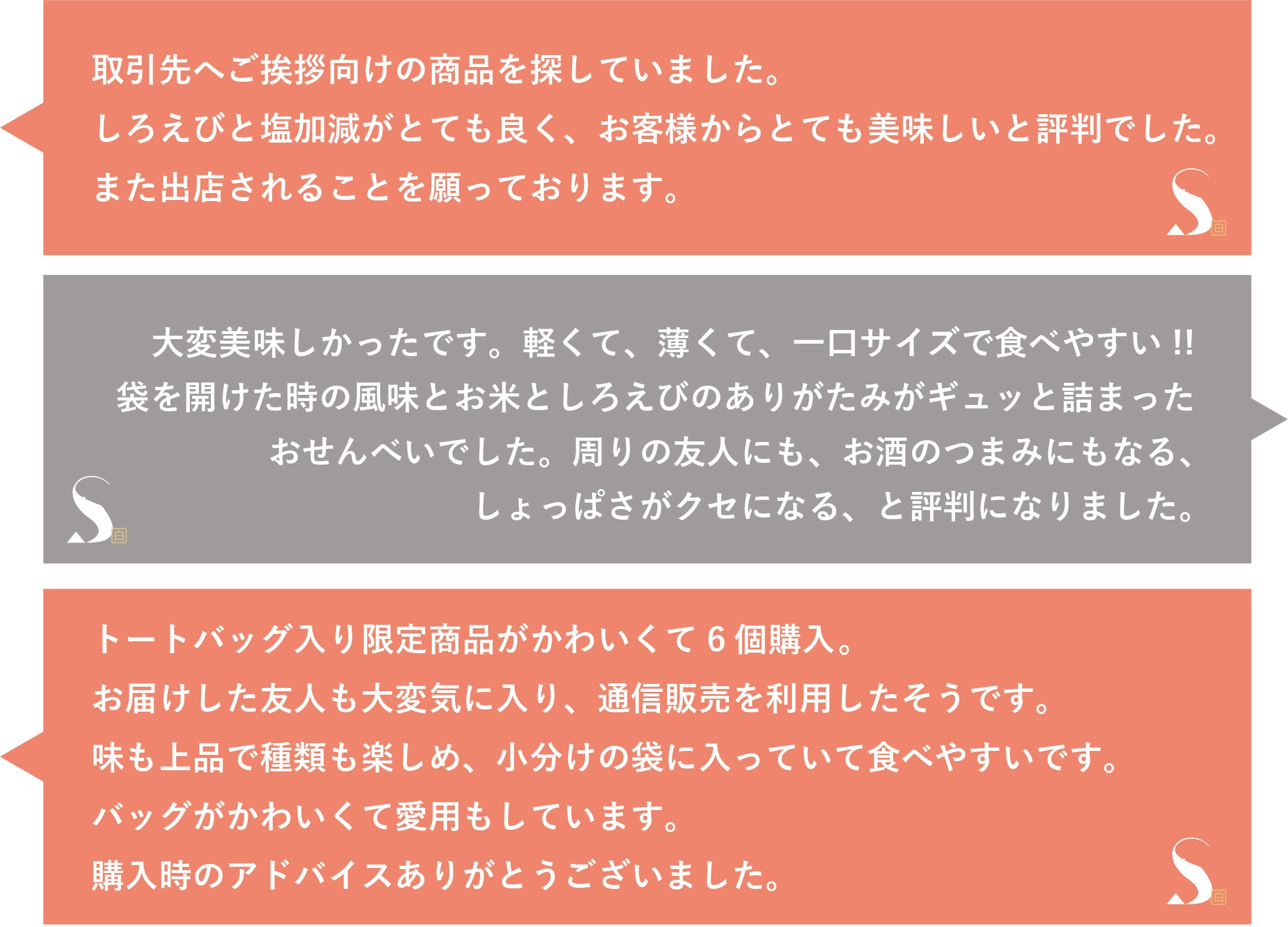 SHIROSASARAYAポップアップショップご利用のお客様より、うれしいお声をいただいております。