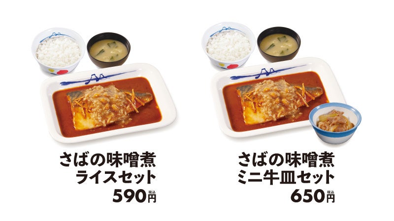さらに今回は、本メニューをよりおいしく満足にお召し上がりいただけるよう、「ミニ牛皿セット」をご用意しました。また、テイクアウトでおうちごはんのおかずに一品プラスいただけるよう、単品での購入も可能となっております。こだわりのプレミアム仕上げ「さばの味噌煮」をぜひこの機会にご賞味ください。