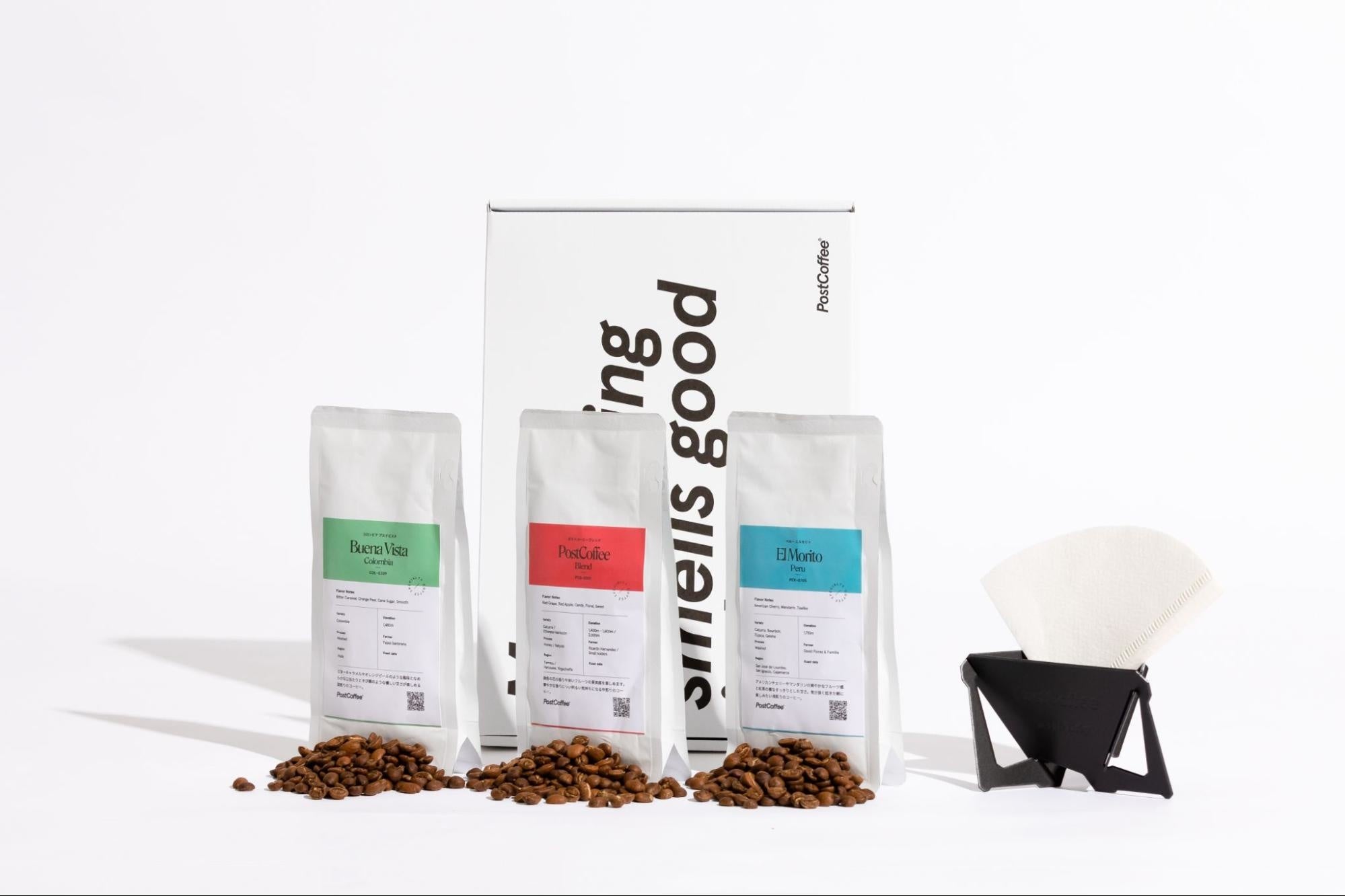 PostCoffeeは、毎月自宅のポストに日本・世界各地の良質なスペシャルティコーヒーをお届けするサブスクリプションサービスです。オンラインで無料でできる「コーヒー診断」によって、あなた専用にパーソナライズされた3種類のコーヒーを選出。約30万通りの組み合わせの中から、あなただけの1箱をポストにお届けします。自社焙煎のほか、国内外の人気コーヒーショップのコーヒーも楽しむことができます。