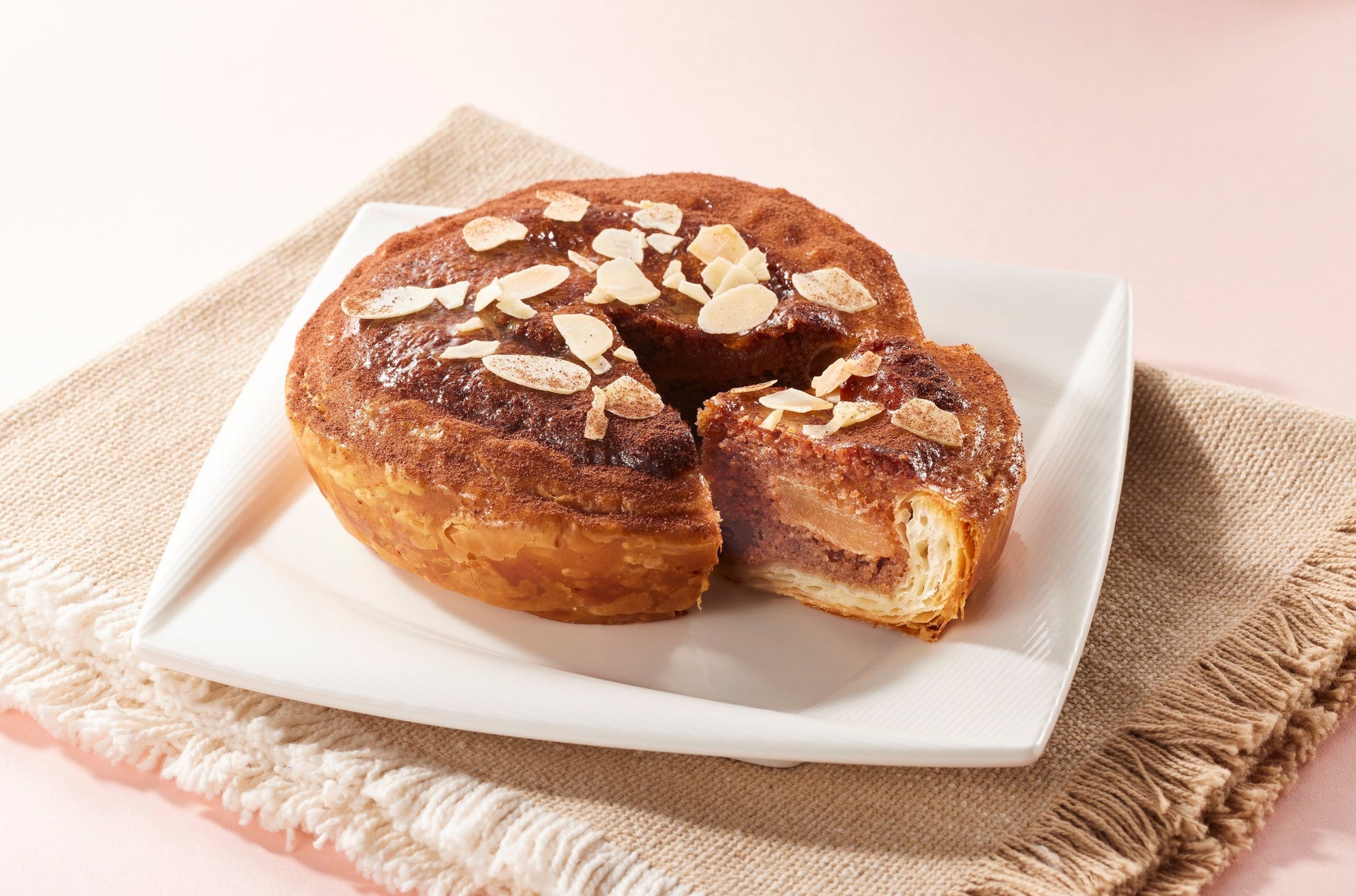 256層に折り込んだオリジナルのパイ生地とチョコを使用したアップルパイです。チョコとリンゴの両方に相性の良いナッツを混ぜ込みました。