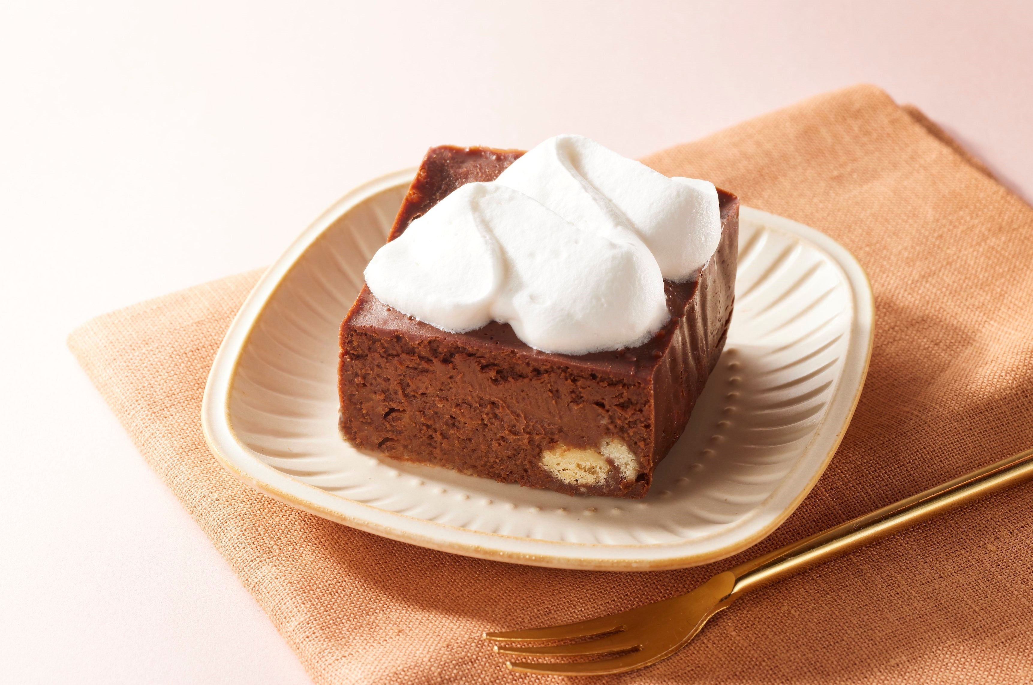 ベルギー産チョコレートとチーズを組み合わせたテリーヌです。ねっとりと濃厚な味わいをお楽みいただけます。上部に絞ったホイップクリームとの相性も抜群です。