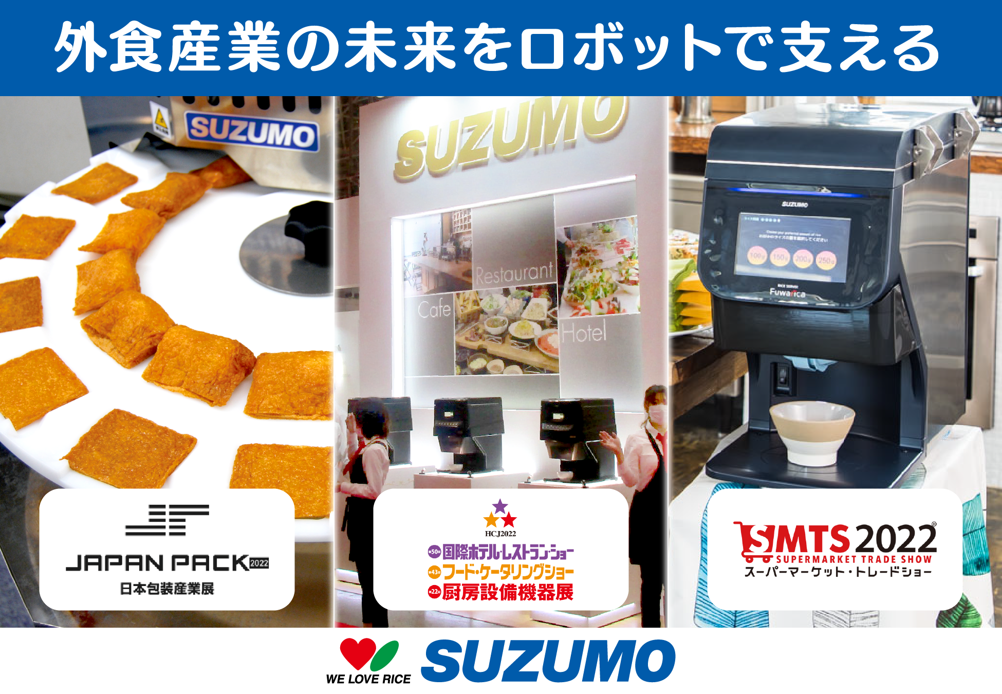 | 主な展示予定製品 | ・ご飯盛り付けロボットFuwaricaシリーズ ・海苔巻きロボット ・袋開口機&専用袋 など |