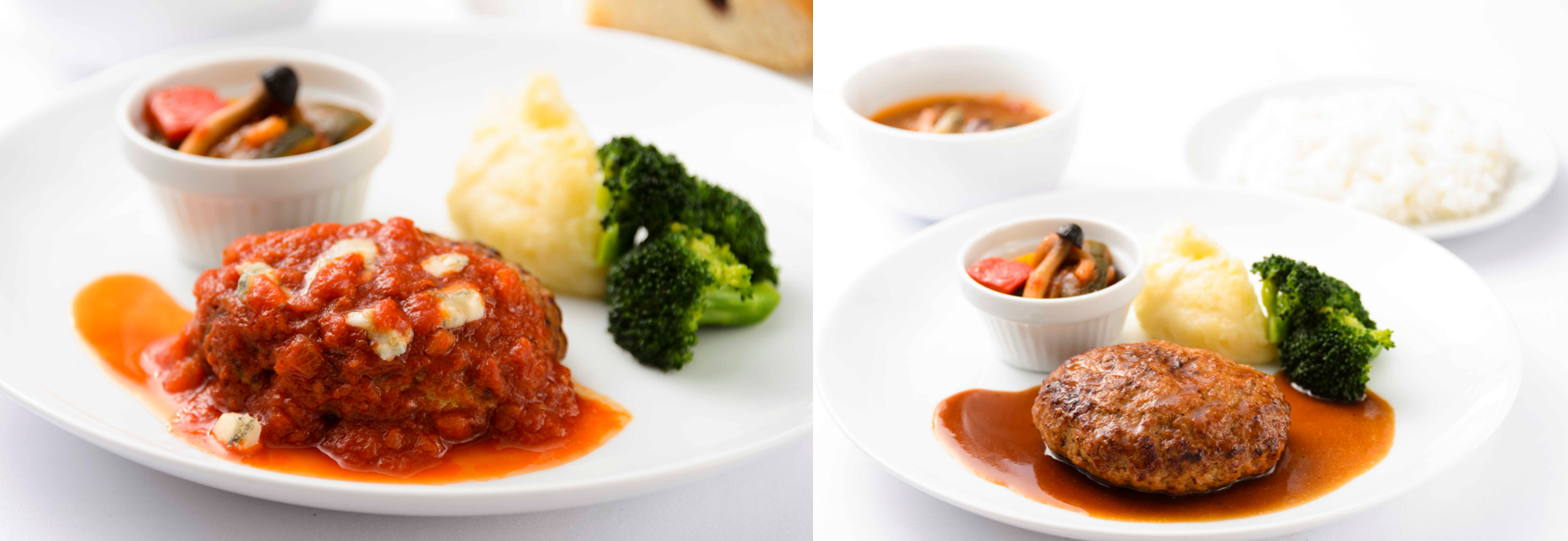 「スタンダードメニュー」のハンバーグと、成田シェフが全ての料理を監修した「コースメニュー」をシチュエーションにあわせてお選びいただけます。