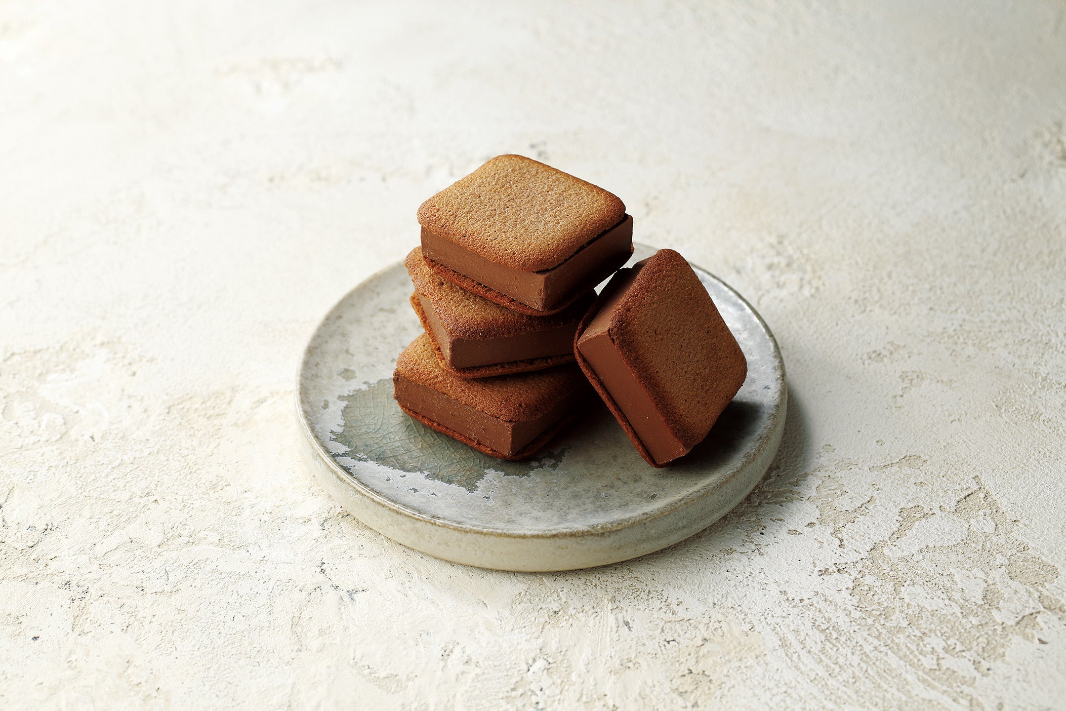 カカオ豆産地の特性を活かしたラインアップが自慢のブランド。暑さ10cmの濃厚なチョコレートをチョコレート生地のラングドシャでサンド。2種類のチョコレートのハーモニーをお楽しみください。