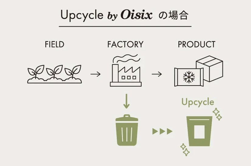 当社では、「Upcycle by Oisix」ブランドの開始に伴い、フードロス削減への取り組みの対象を当社PB商品製造委託先および原料仕入先の提携工場に拡げ、サプライチェーン全体でのフードロス削減の取り組みを開始しました。地球と身体にやさしい、新しい食の楽しみ方を広げるフードロス解決型ブランドとして、畑や加工現場から出た廃棄食材を活用し、より環境負荷が低く、新たな価値を加えた自社オリジナルのアップサイクル商品開発を積極的に展開しています。