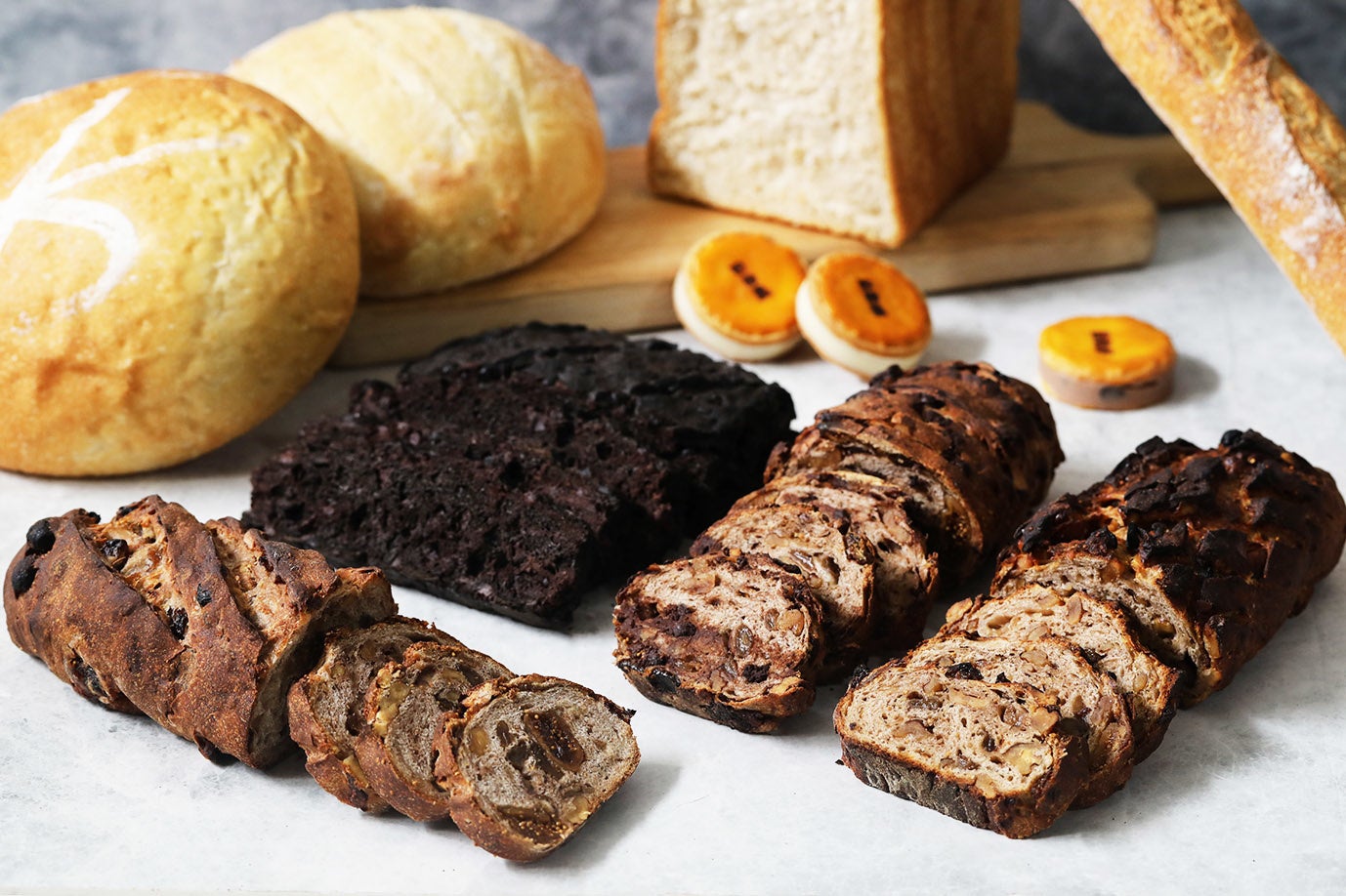 フランス産のゲランドの塩や、イタリア産の中硬水を使用した生地に、赤ワインに浸けたオーガニックの白イチジク、レーズン、クルミを合わせて焼き上げました。