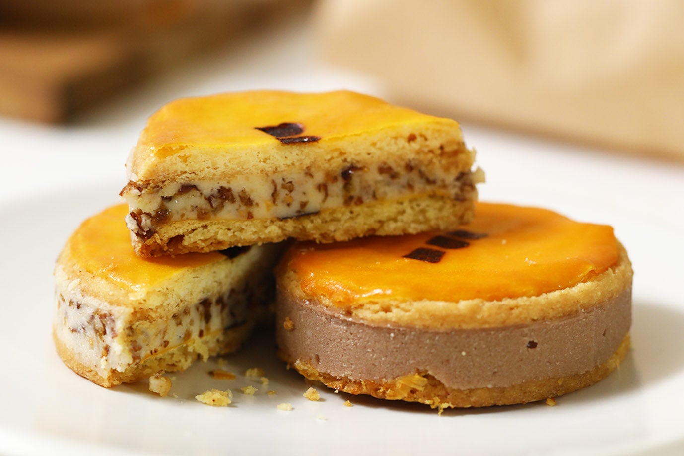 ショコラは、ナッツ香るバタークリームにチョコチップを入れ、味や香りだけでなく食感もお楽しみいただけるバターサンドに仕上げました。また、イチジクとレーズンは、レーズンとドライイチジクを混ぜ合わせたバタークリームをたっぷりサンド。どちらもとろけるような口どけと、すっきりとした味わいが特徴です。