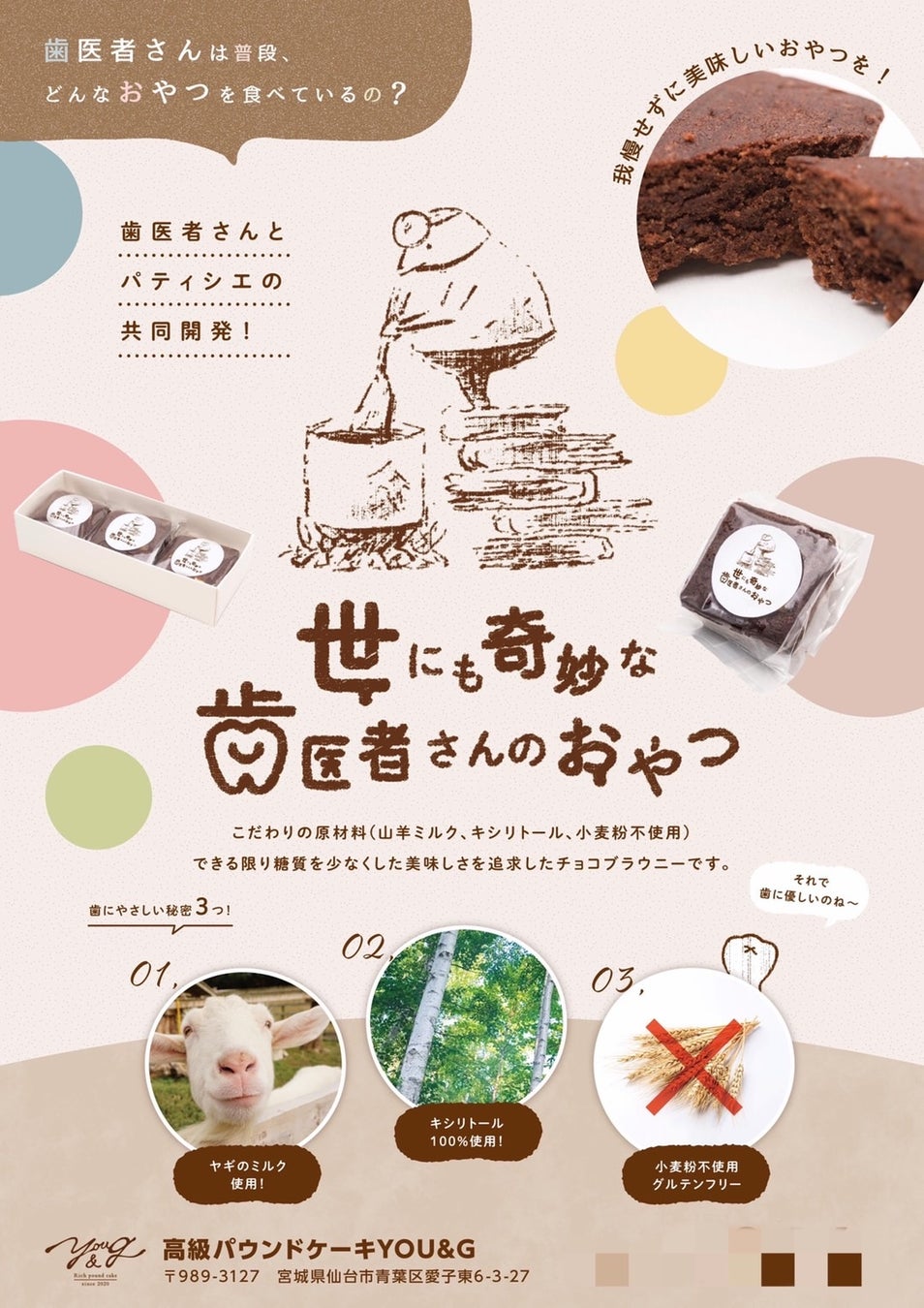東北などの旬の食材を使った「高級パウンドケーキ専門店YOU&G(ユージー)」(以下「YOU&G」)は、歯科医と共同開発した「世にも奇妙な歯医者さんのおやつ」をバレンタインデーに向けて販売開始したことをお知らせいたします。