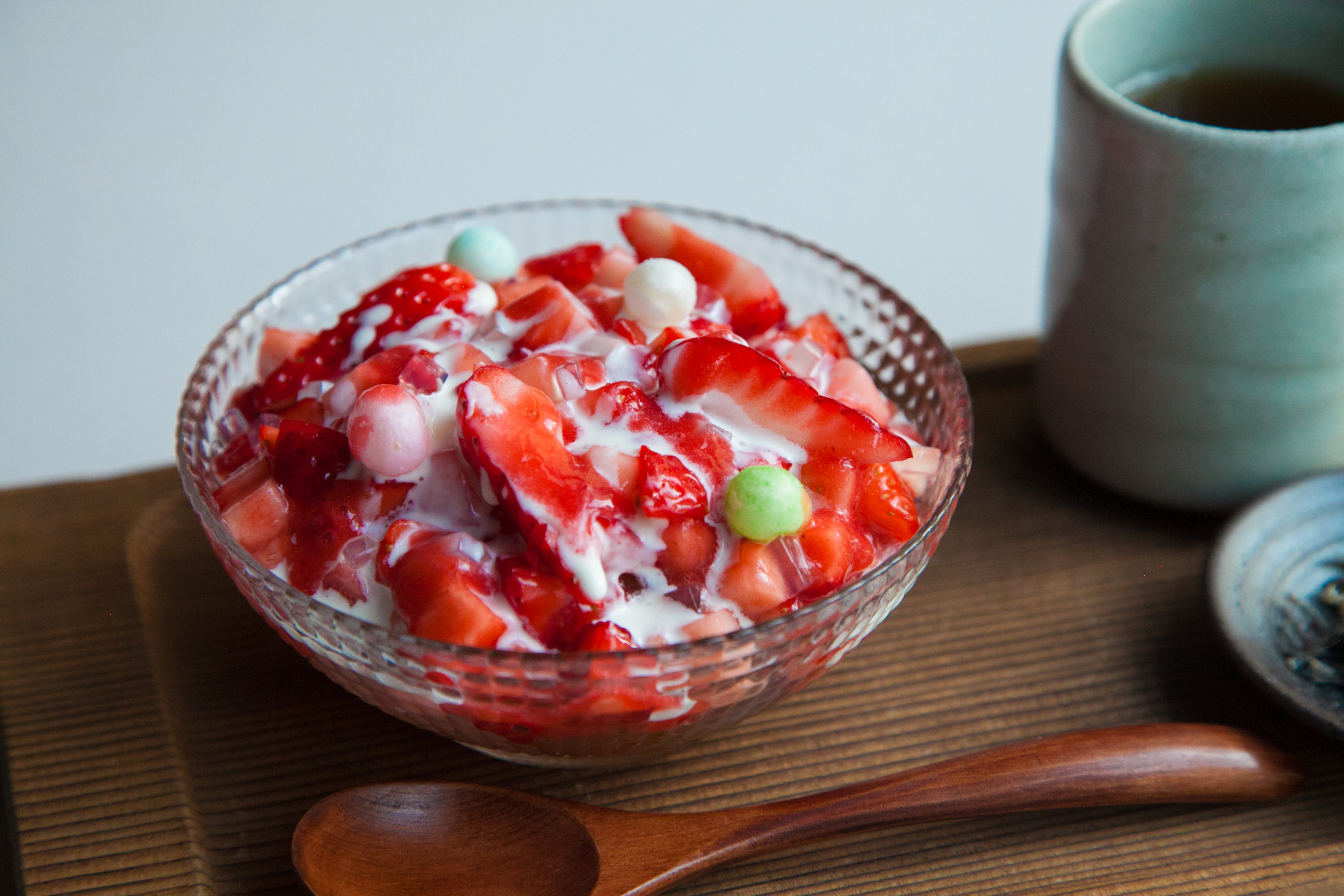 ・季節の果実あんみつ *オープン時からはいちごを展開。