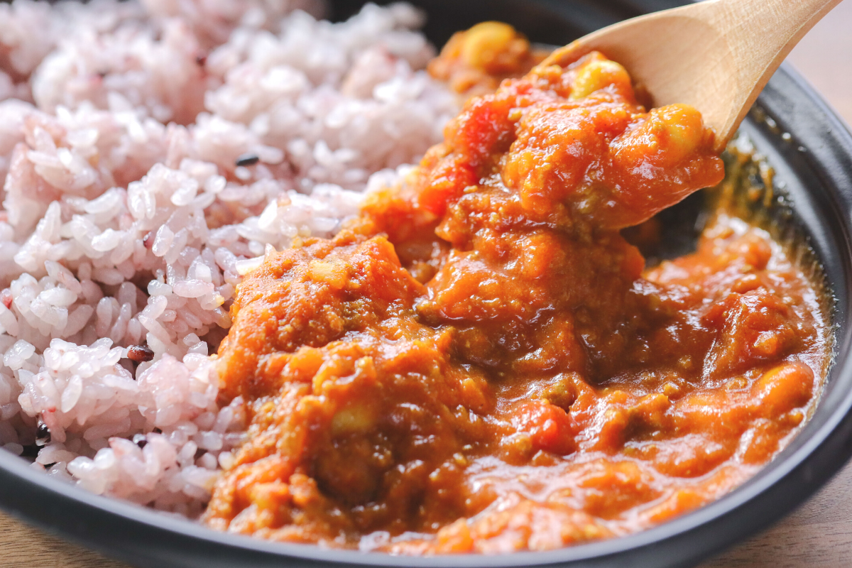 普段、TOMOCAFF’E等のお店で提供しているキーマカレーと同様に、お野菜の水分だけで煮込み、カレールーやラードを使用せず、スパイスをオリジナルブレンドしたからだにやさしいレトルトキーマカレーに仕上げました。