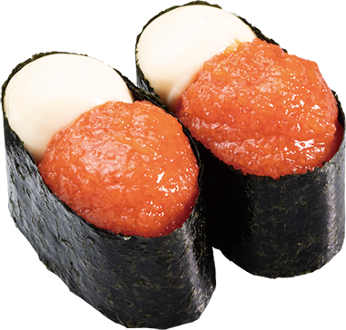 みんな大好き博多の明太子!かっぱ寿司自慢のシャリに合う辛味と粒感がイチオシです。
