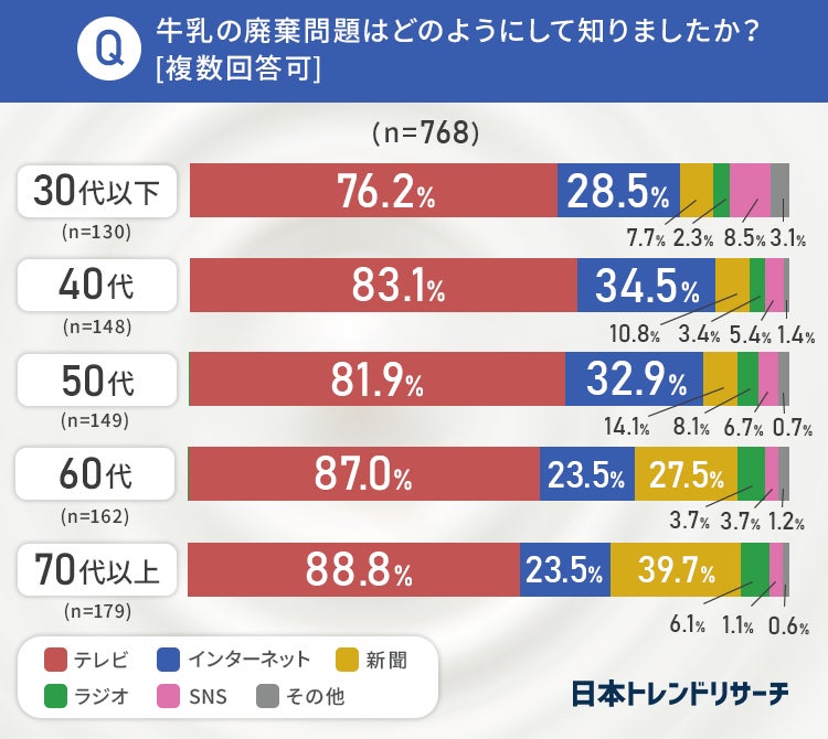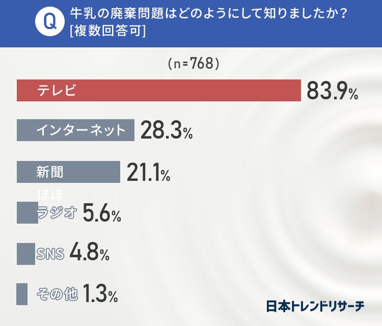 牛乳の廃棄問題について「知っている」と回答した768名の方に、どのように知ったのか聞きました。