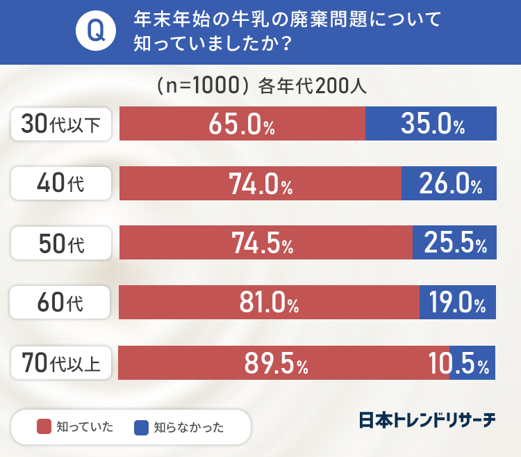 まず最初に、年末年始の牛乳の廃棄問題について知っていたか聞きました。