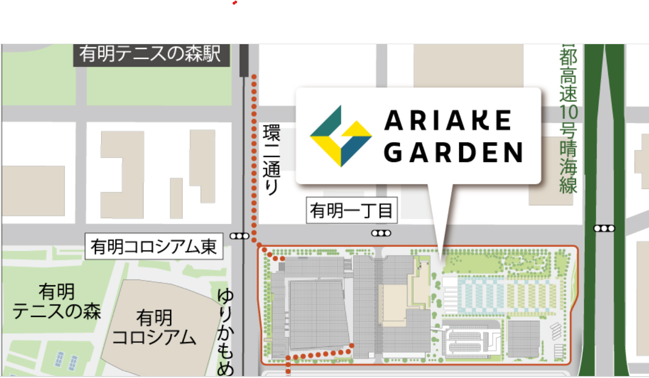 「有明ガーデン」は東京湾岸エリア最大級の商業施設であり、東京湾岸エリア最大店舗数を誇る200店超のショッピングモールをはじめ、国内最大約8,000人収容の劇場型ホールや、劇団四季専用劇場、大規模な温浴施設を備えたハイグレードホテル、総戸数1,500戸超のトリプルタワーマンションなどで構成されます。