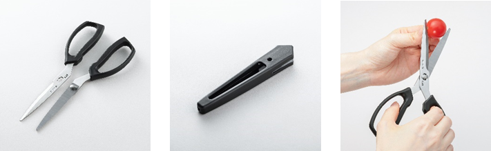 細かな作業に適したスリムタイプのキッチンばさみ。細かなギザギザの刃なのですべりにくく、食材をしっかり捉えます。2つの刃は着脱式で洗いやすく衛生的。持ち運びや収納に便利なキャップ付きです。