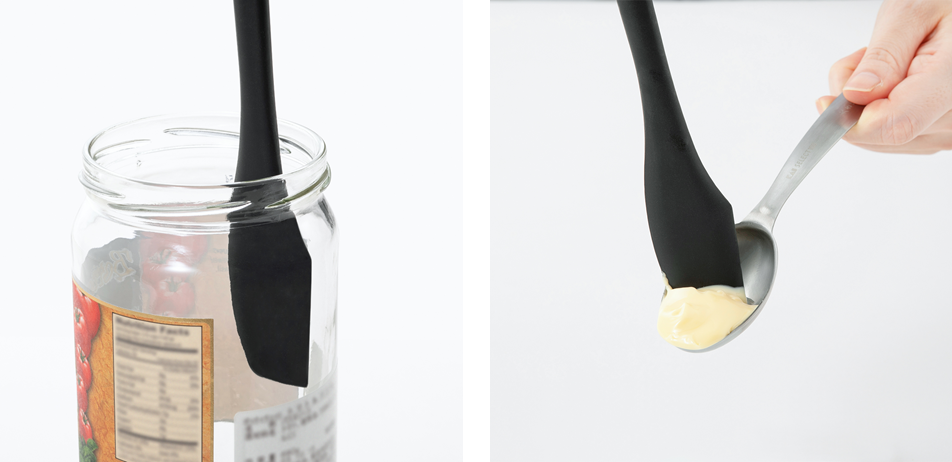 フィットしやすいヘラ形状。 瓶からの取り出しや合わせ調味料づくりに。