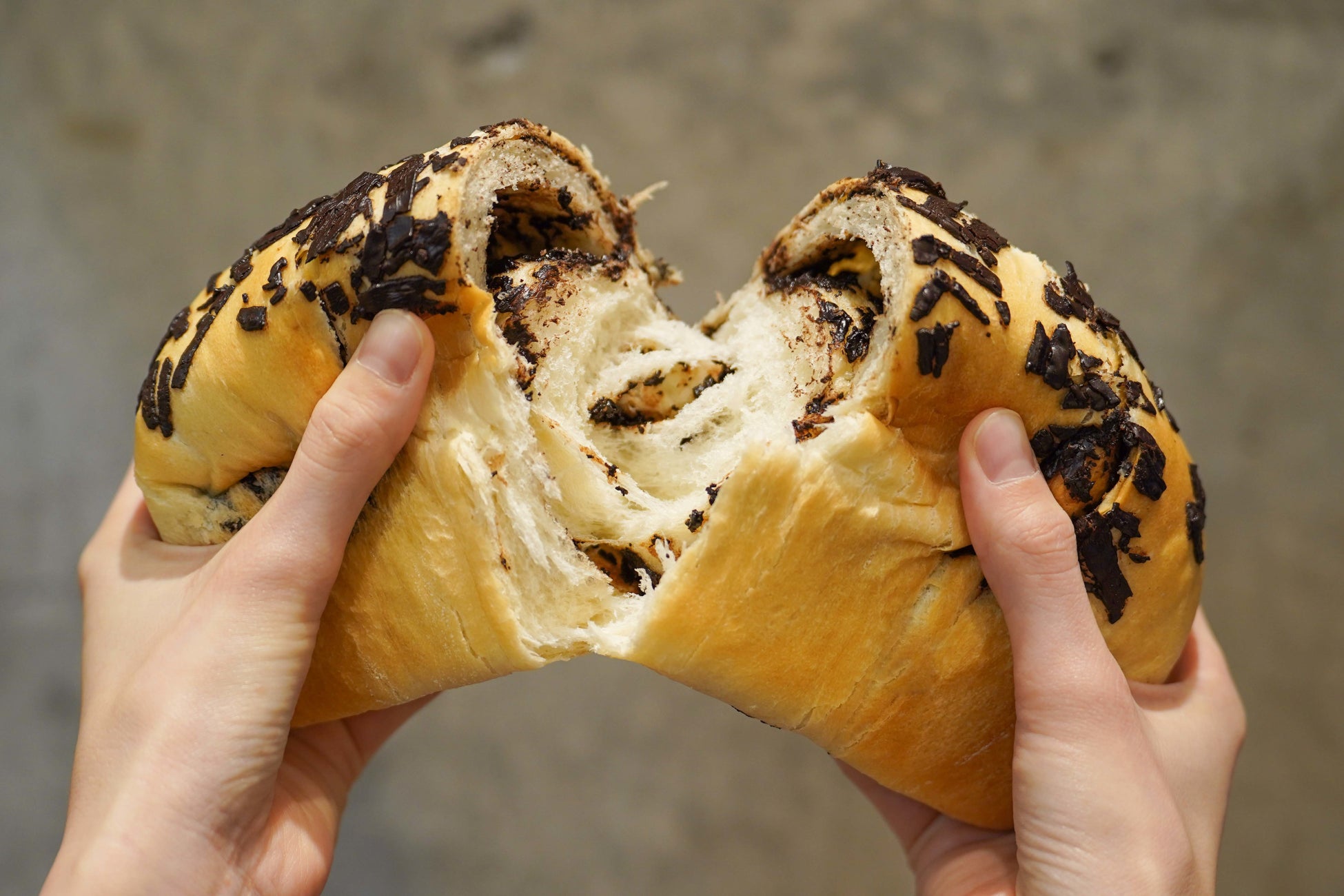 生地はオリジナルW湯種製法に、加水率80%以上で仕上げる多加水製法を組み合わせた日本初の「究極のふわもち食パン」をベースに、芳醇な味わいと口溶けが特徴のベルギーチョコレートを贅沢にぐるぐると巻き込みマーブル状に仕上げたチョコレート好きにはたまらない商品です。そのままでも、トーストしても、さまざまなアレンジでお楽しみいただけます。