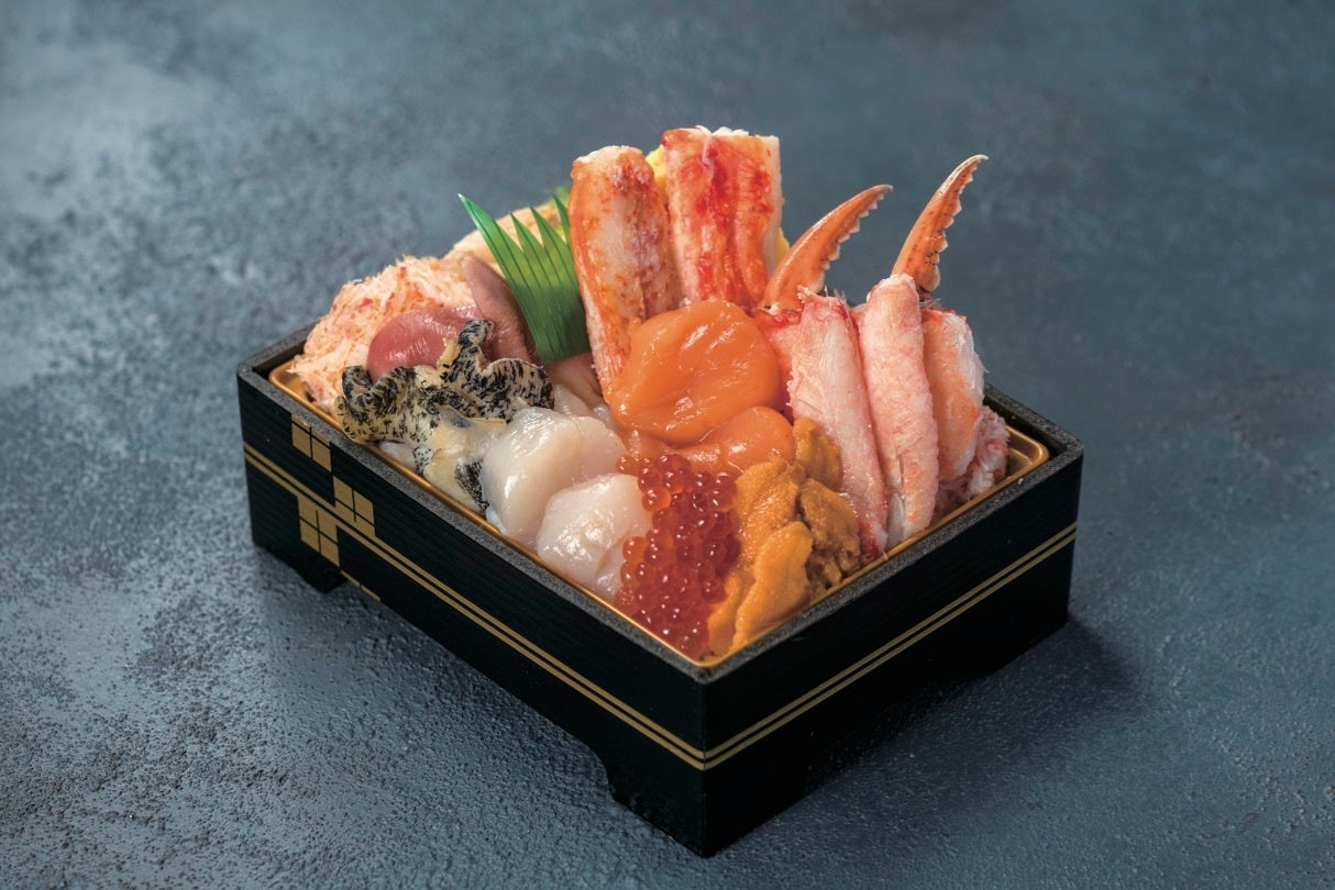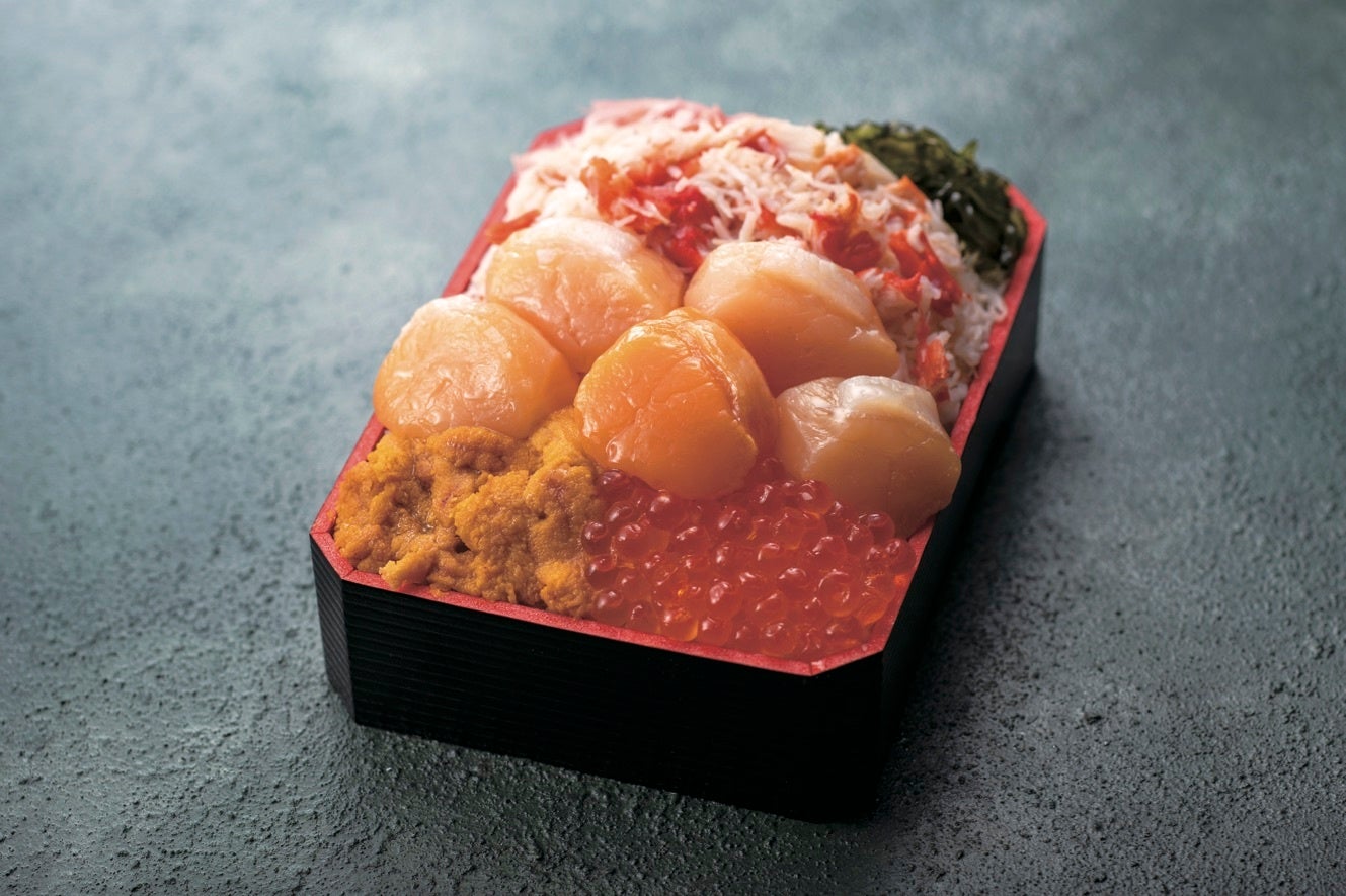 今回限定商品「紅白ほたてといばら蟹うにいくら弁当」は、人気食材 4 種てんこ盛り。