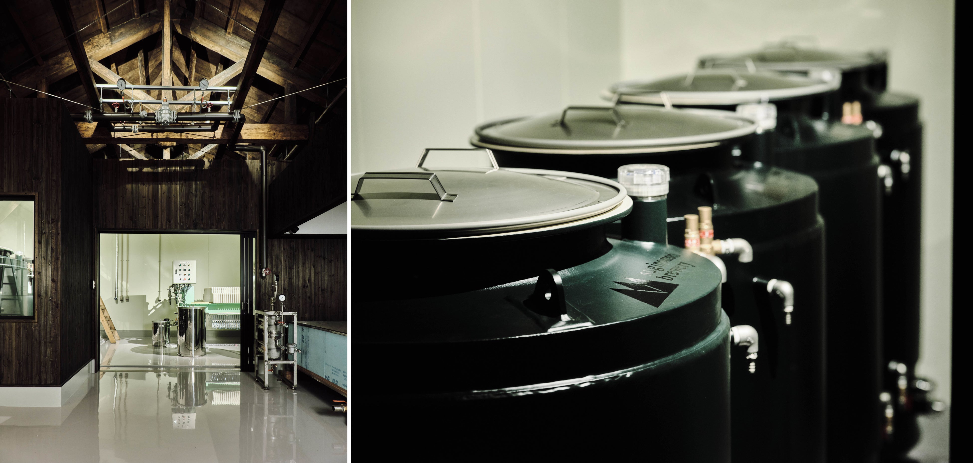 当蔵は約250㎡のマイクロブルワリーとして以前の1/3以下のサイズで再生しました。レストランが併設された限られた空間で、小型タンク(1800Lが4台、900Lが4台)を採用し、杜氏 入江将之による「全工程手作業の丁寧な酒造り」での小規模生産を行っています。