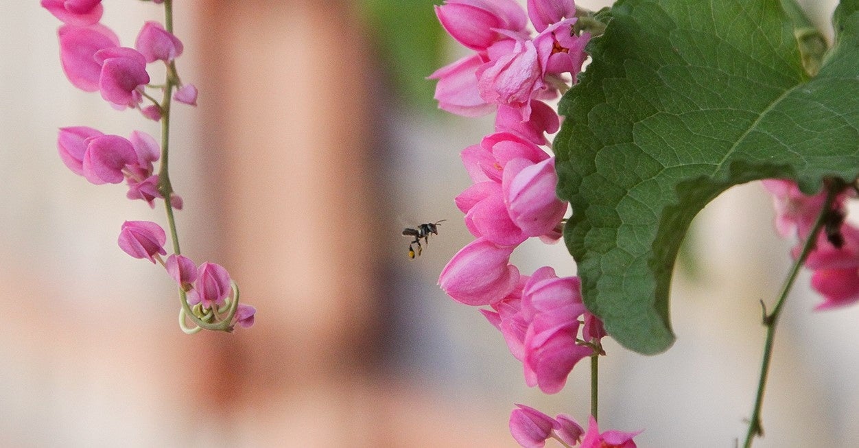 ハリナシバチは、ミツバチのように蜜ろうで巣をつくるのではなく、プロポリス(樹液などと蜜ろうをまぜた雑菌に強い物質)でつくるという習性があります。