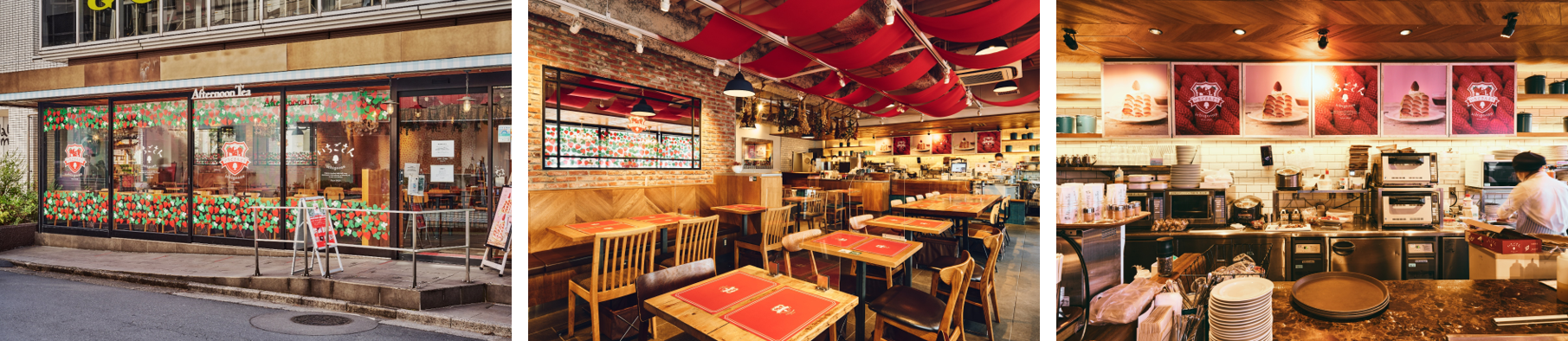 期間中、お店全体が「いちごさんデコレーション」仕様に。「いちごさん」に囲まれたお店で、いちごさんどミルクレープをお楽しみください。