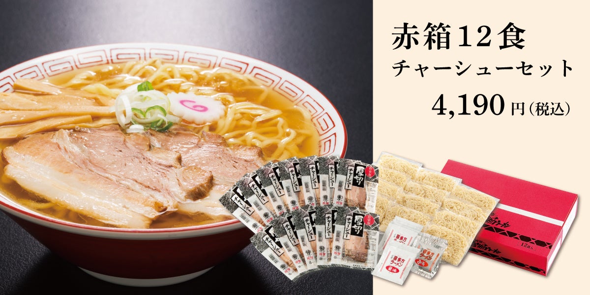 ギフトにも最適な、弊社の売上1位の「赤箱12食入チャーシューセット」も送料無料です。