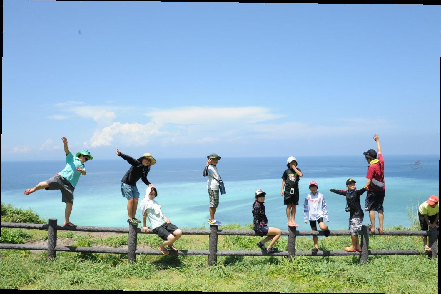 フェリーが最初に到着する竹島は、緩やかな放牧場が広がるのんびりした島。マリンブルーの海は硫黄島とともに人気のダイビングスポットになっています。
