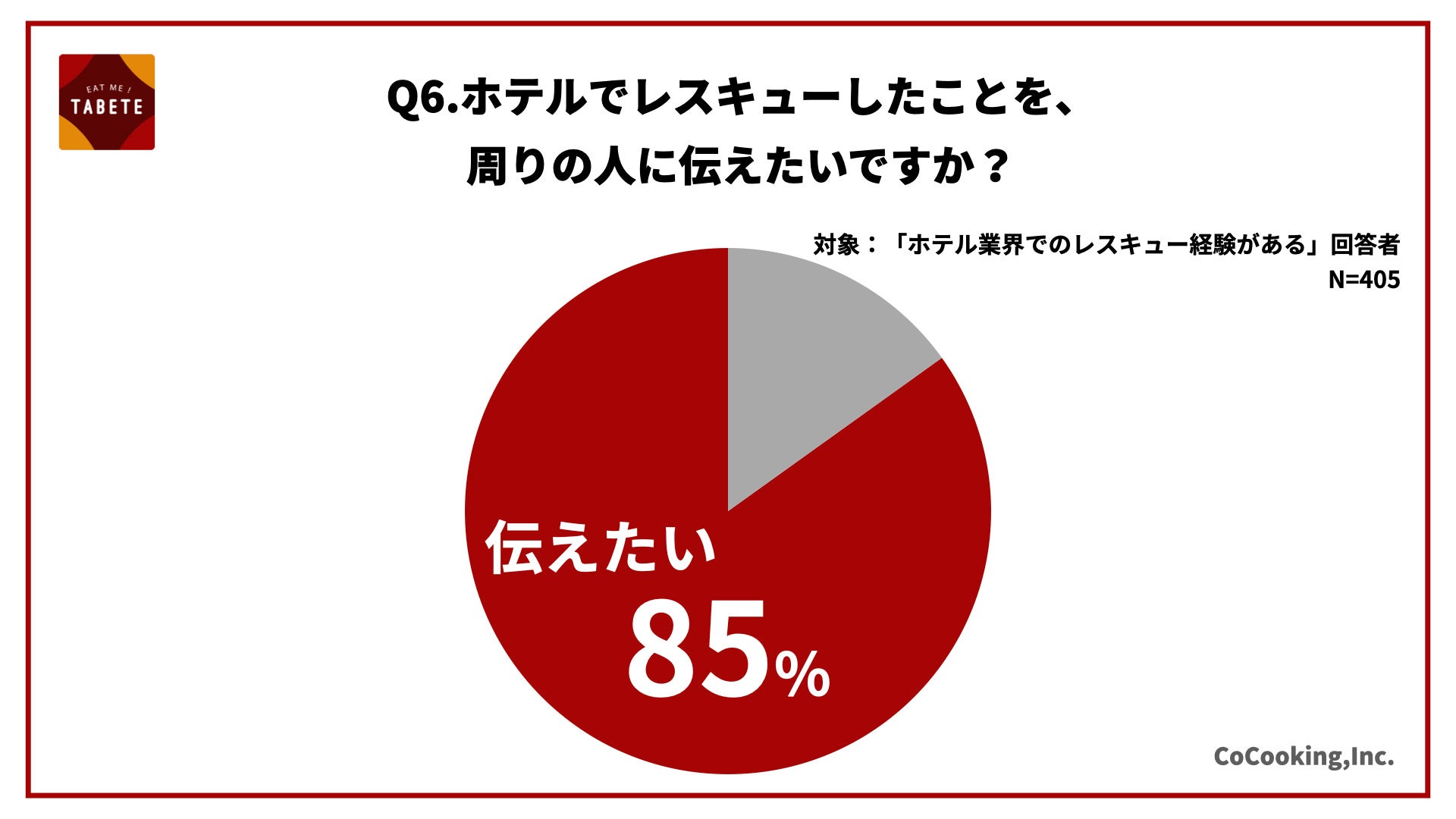 6) ホテルでTABETEを通してレスキューしたユーザーの内、85%が「周りの人に伝えたい」と回答