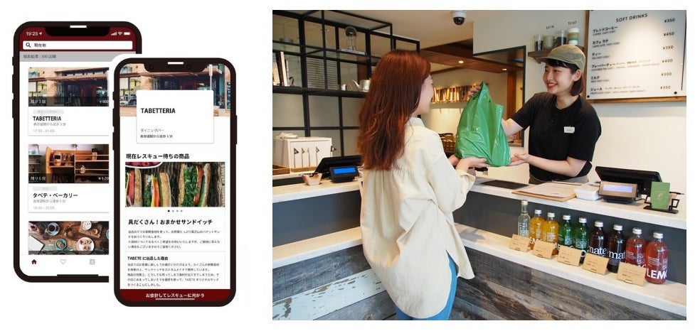 飲食店や小売店は、廃棄の危機にある食事を1品から出品可能。出品したメニューは即時にTABETEアプリに掲載され、49万人以上のユーザーが閲覧できるようになります。