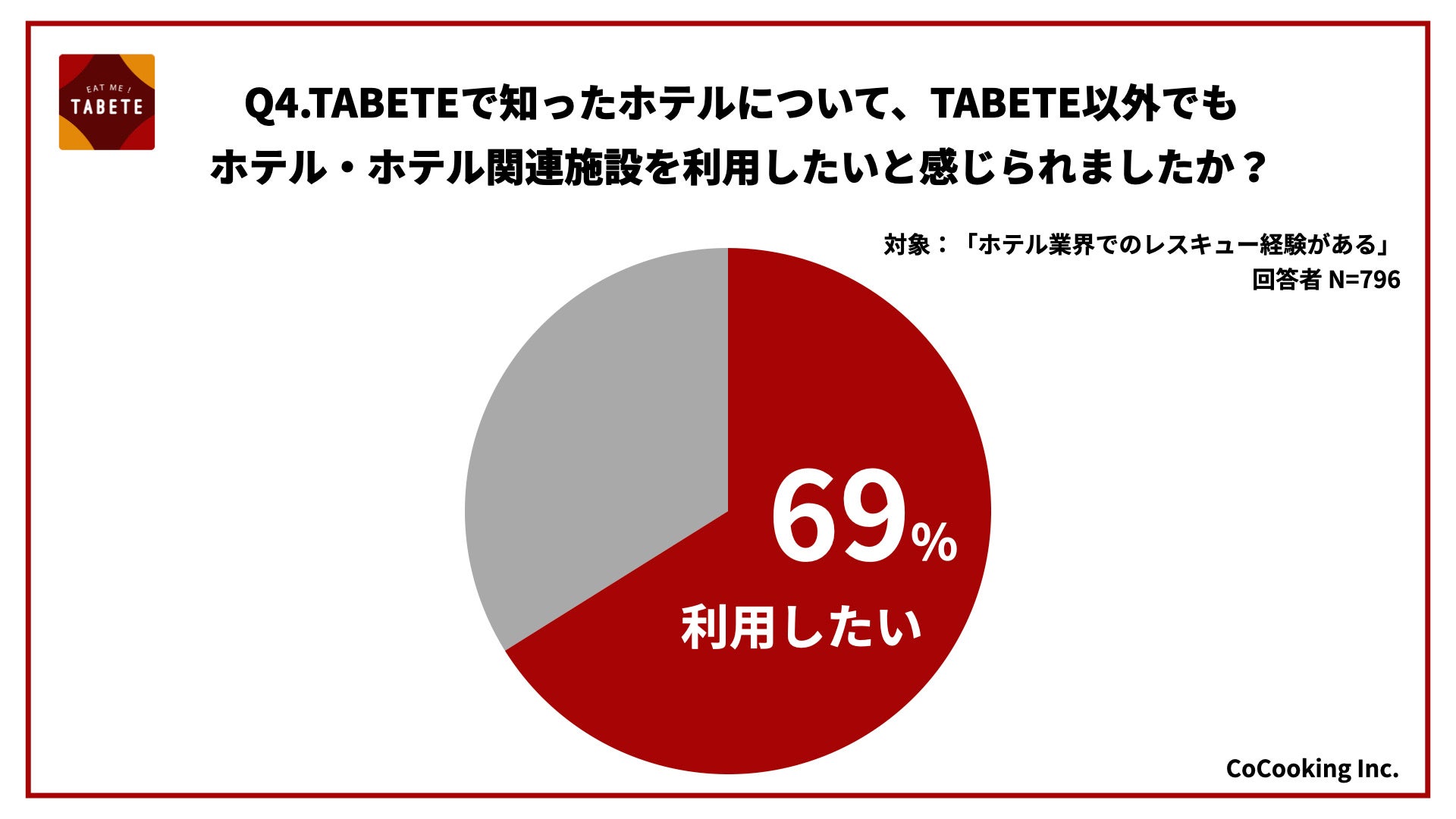 4) TABETEきっかけで67%が「ホテルを通常利用したい」と回答