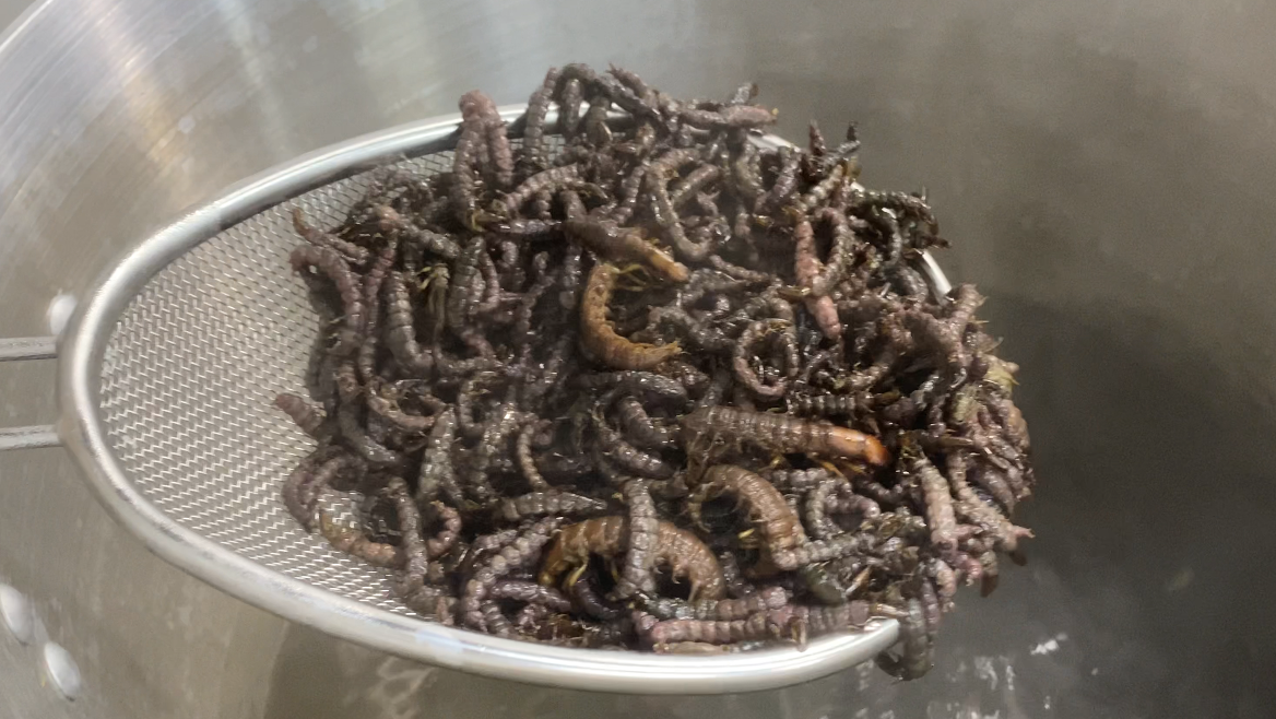 長野県の地元の漁師さんと生徒たちが2021年冬に採集した、旬の新鮮なざざむしを100%の使用しています。