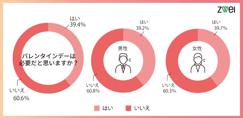 5~6割の男女がバレンタインデーを意識したりバレンタインデートをしたいと思っている一方で、6割の男女がバレンタインデーは「必要ない」と答える意外な結果となった。