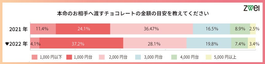 「1,000円以下」という回答が最も多く昨年と同様の結果となった。しかし、昨年よりも義理チョコに掛ける費用が多少ではあるものの上がった。