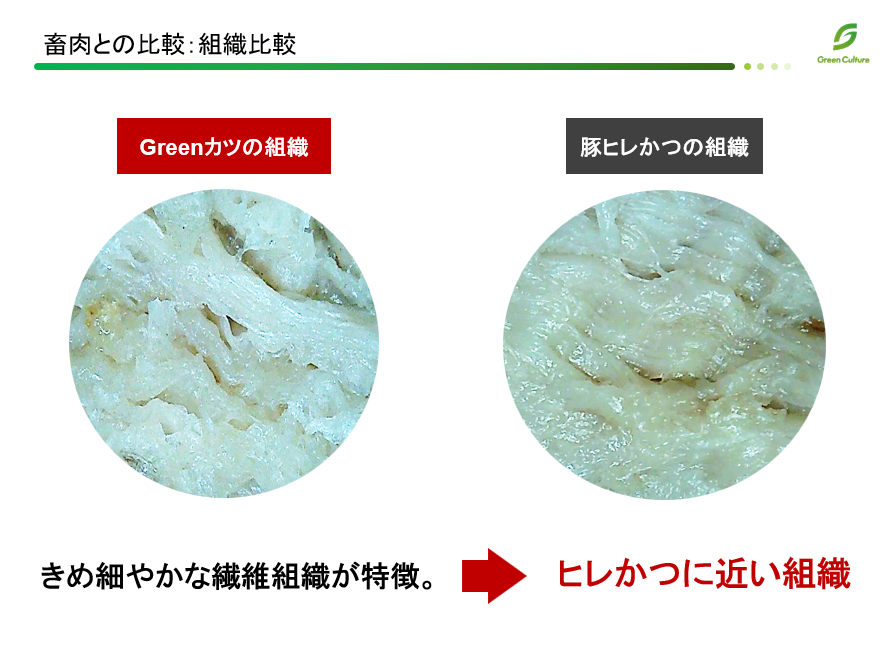 | 組織 | 顕微鏡で観察したところ、豚ヒレかつと近しい組織が確認できた |