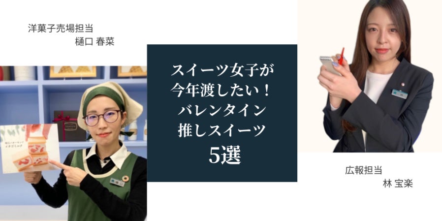 今回そんな「お菓子なチョコ展」の中から、大丸福岡天神店の社員の中でも、5本の指に入る程の甘党!スイーツ好きの 洋菓子売場担当の樋口 と 広報担当の林 がおすすめする『スイーツ女子が今年渡したい!バレンタイン推しスイーツ』をご紹介いたします!