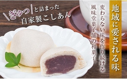 40年以上になる老舗和菓子店で人気の一品。生地に使われるそば粉は地元新富町産。軽い口当たりの生地の中に自家製のこしあんがぎゅっと詰まっています。